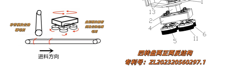 核心打磨工位為強力寬砂帶和行星式研磨、拋光刷盤,因采用模塊化的設計,兩種工位可單獨或者組合使用。